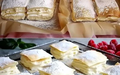 1 opakowanie ciasta francuskiego 600 ml mleka 2 opakowania mieszanki budyniowej waniliowej 2 łyżki cukru 300 ml bitej śmietany 2…